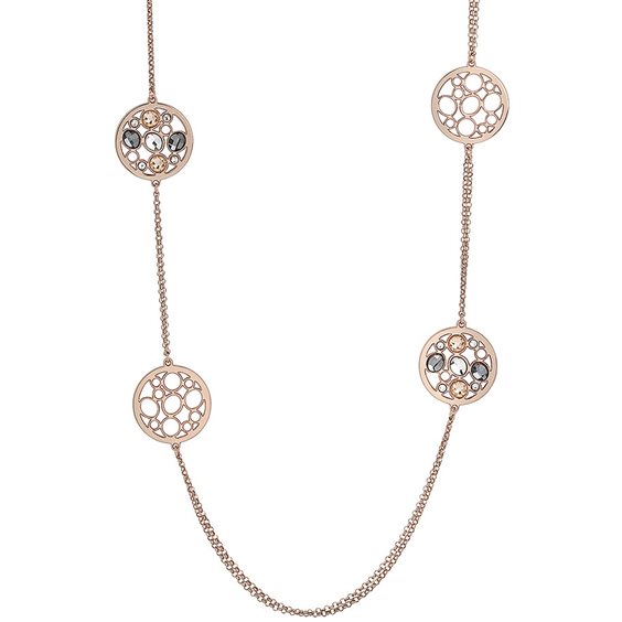 Collana Da Donna Di Boccadamo Della Linea Mediterranea Collezione Harem. Collana Lunga Doppio Filo In Bronzo Placcto Oro Rosa Con Elementi Decorativi Circolari, Alternati Ad Altri Con Decoro In Cristalli Swarovski Crystal, Color Pesca E Silver Night. Collana Della Lunghezza Di Cm 85. La Referenza È Xgr439Rs Questo collana verrà spedito con Scatola Originale Boccadamo