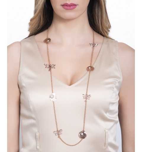 Collana Da Donna Di Boccadamo Della Collezione Krikri Della Linea Mediterranea. Collana Lunga In Bronzo Placcato Oro Rosa Con Libellule Della Lunghezza Di Cm 2 E Fiori Del Diametro Di Cm 2 Decorati Da Cristalli Swarovski Di Colore Crystal, Ametista E Antique Pink. Lunghezza Cm 95. La Referenza È Xgr452Rs Questo collana verrà spedito con Scatola Originale Boccadamo