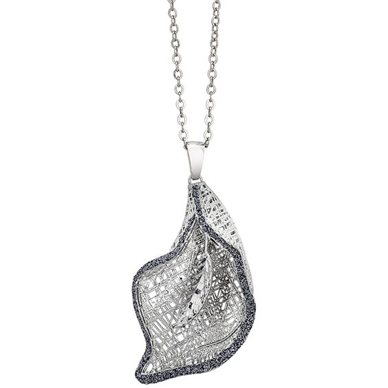 Collana Da Donna Di Boccadamo Della Collezione Alissa Della Linea Mediterranea. Collana In Bronzo Rodiato Con Pendente A Forma Di Calla In Glitter Nero Della Dimensione Di Cm 3,2X6, Realizzata Con La Tecnica Dell'Elettrofusione. Duplice Indosso: 1 Filo Cm 80 / 2 Fili Cm 40. La Referenza È Xgr466 Questo collana verrà spedito con Scatola Originale Boccadamo