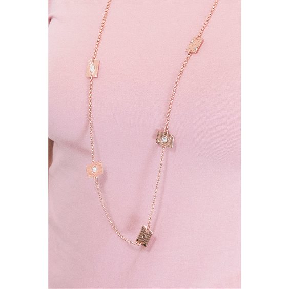 Collana Da Donna Di Boccadamo Della Linea Mediterranea Collezione Egiza. Collana Lunga Placcata Oro Rosa Modello Chanel, Decorata Da Elementi Modulari Di Ispirazione Egiziana Con Cristalli Swarovski Crystal. Materiale: Bronzo. Componenti: Cristalli Swarovski Taglio Navette E Circolare. Misure: Lunghezza Cm 105. Chiusura Con Moschettone. Dimensione: Moduli Cm 1,2X1,8. La Referenza È Xgr503Rs Questo collana verrà spedito con Scatola Originale Boccadamo