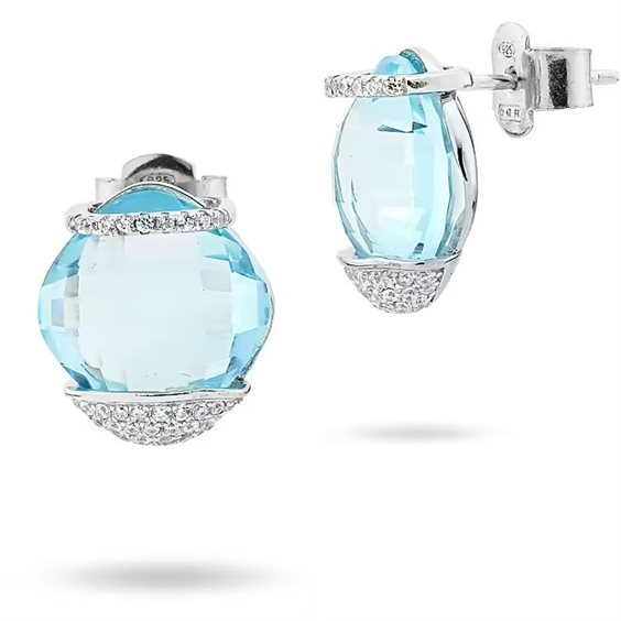 Prodotto: orecchini donna gioielli Bottega Boccadamo Zoe BOR140A Orecchini da donna di Bottega Boccadamo della collezione Zoe. Orecchini rodiati a lobo con cristallo color acquamarina e pavè di zirconi. Materiale: argento. Produzione: realizzato in Italia. Dimensione: cristallo cm 1,2 x 1,2 . Chiusura: con farfalla. La referenza è BOR140A Questo articolo verrà spedito con Scatola Originale Bottega Boccadamo se prevista dal brand