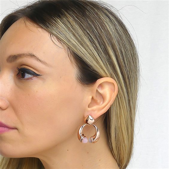 Orecchini Da Donna Di Boccadamo Della Collezione Caleida Della Linea Mediterranea. Orecchini Pendenti Placcati Oro Rosa Dal Motivo Contrariè Con Cristalli Piramidali Color Quarzo Rosa E Agata Grigia Gatteggiante Su Base Di Zirconi. Gioiello Realizzato In Bronzo. Produzione: Realizzato In Italia. Misure: Lunghezza Cm 4. Dimensione: Cristalli Mm 7. Chiusura: A Farfalla. La Referenza È Kor022Rf