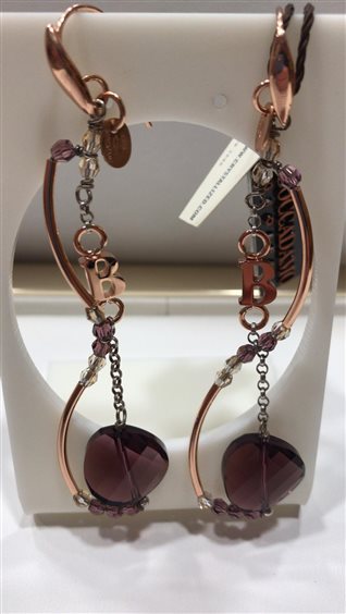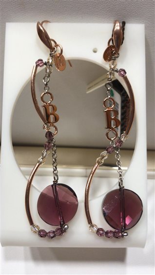 ORECCHINI BOCCADAMO IN ARGENTO ROSATO PENDENTI CON PIETRA SWAROVSKI VIOLA