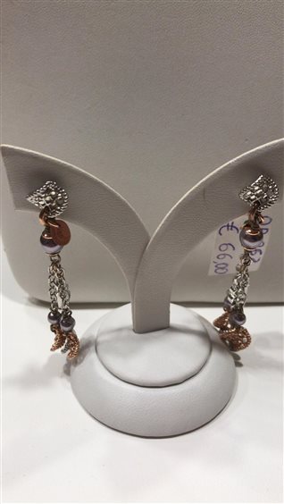 ORECCHINI BOCCADAMO IN ARGENTO PENDENTI CON PERLE SWAROVSKI GRIGIE.