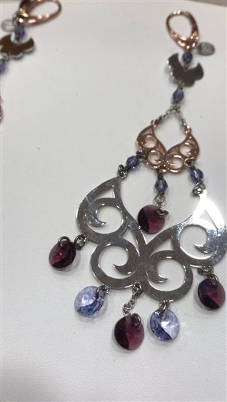 ORECCHINI BOCCADAMO DONNA IN ARGENTO BIANCO E ROSA PENDENTI CON PIETRE SWAROVSKI VIOLA.