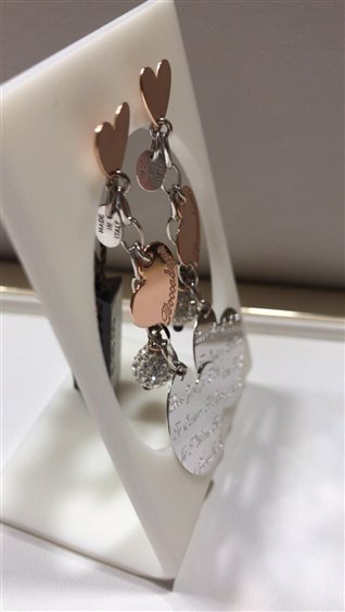 ORECCHINI BOCCADAMO IN ARGENTO CON CUORI ROSATI PENDENTI COLLEZIONE AMAMI CON SCRITTE TI AMO NELLE VARIE LINGUE DEL MONDO CON ELEMENTS SWAROVSKI.