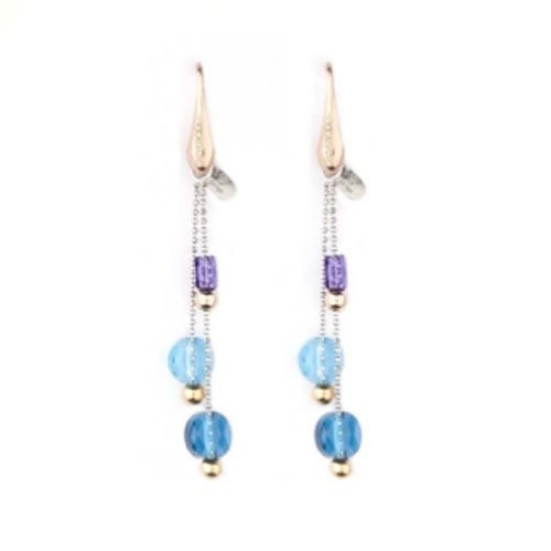 Orecchini Boccadamo in argento 925 pendenti con cristalli "Swarowski" azzurre e viola