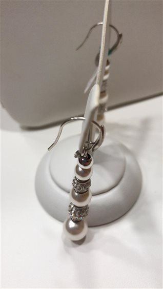 ORECCHINI BOCCADAMO PENDENTI IN ARGENTO CON PERLE BIANCHE SWAROVSKI E PIETRE BIANCHE SWAROVSKI.