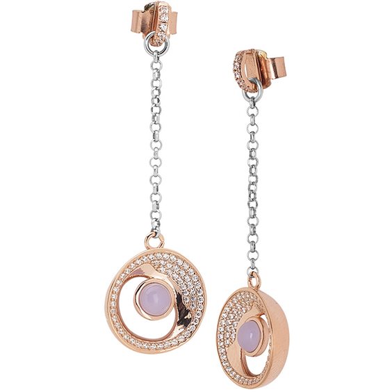 Orecchini Da Donna Di Boccadamo Della Collezione Jewels Della Linea Eclissi. Orecchini Pendenti Rodiati Con Elemento Eclissi Di Luna Finale Placcato Oro Rosa E Decorato Da Zirconi E Cristallo Color Lavanda. Materiale: Argento. Misura: Lunghezza Cm 3,5. Dimensione: Diametro Elemento Eclissi Di Luna Cm 1,5. La Referenza È Or762Rs. Questo orecchini verrà spedito con Scatola Originale Boccadamo