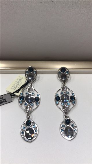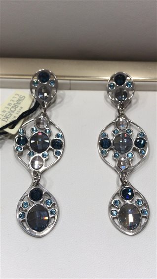 ORECCHINI BOCCADAMO DONNA IN BRONZO ARGENTATO PENDENTI CON PIETRE SWAROVSKI BLU E AZZURRE.
