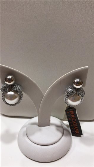ORECCHINI BOCCADAMO DONNA IN BRONZO E TESSUTO ARGENTATO CON PERLA BIANCA SWAROVSKI.