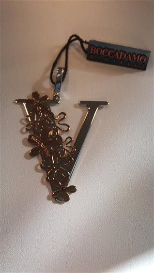 CIONDOLO LETTERA P BOCCADAMO GIOIELLI DONNA REF. PS535P Ciondolo lettera V in argento 925 rodiato e bronzato DIMENSIONI: Lunghezza cm 6 Larghezza cm 4 Confezione: scatola originale BOCCADAMO