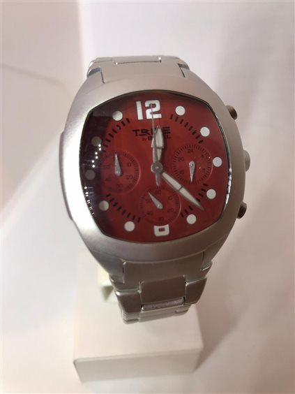 Orologio Tribe by breil con cassa e cinturino in alluminio con quadrante quadrangolare fondo rosso.