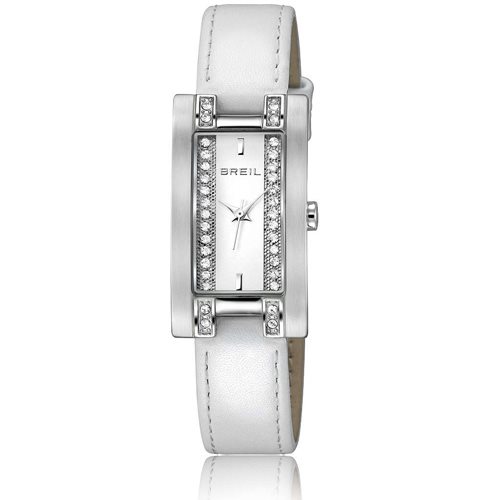 OROLOGIO BREIL DONNA CASSA IN ACCIAIO CON ZIRCONI BIANCHI FONDO ARGENTO SOLO TEMPO CON ZIRCONI BIANCHI E CINTURINO DI PELLE BIANCHE CON CHIUSURA ARDIGLIONE IN ACCIAIO.