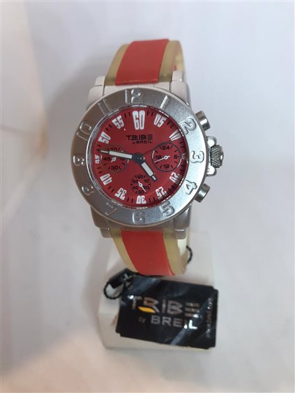 Orologio Tribe by Breilcon cassa in allumino fondo rosso,cronografo...cinturino in gomma rossa e bordi trasparenti con chiusura deployante in alluminio.