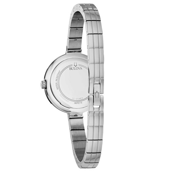 96P215 Orologio Da Donna Con Diamanti Rhapsody Nasce la linea Rhapsody che si distingue per le linee fluide e femminili della cassa rotonda e dell'elegante bracciale entrambi in acciaio. Quadrante nero lavorato doppia zona con indici alternati ad otto diamanti incastonati a mano singolarmente. Il distintivo bracciale in acciaio mostra maglie impreziosite da un distintivo design ed una chiusura da gioielleria, vetro minerale piatto ed impermeabilità fino a 30 metri.
