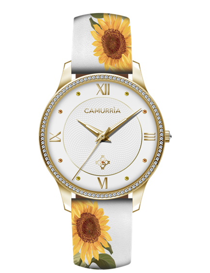La linea Suli di Sicilia, della collezione A Tradizione, presenta l'orologio Glamour con cinturino in pelle decorato in stile siciliano, e quadrante in guillochè con pietre applicate.