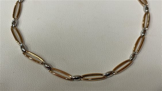 BRACCIALE CHIMENTO DONNA IN ORO ROSA E BIANCO KT 18 A MAGLIA OVOIDALE CON CHIUSURA A MOSCHETTONE. MISURA BRACCIALE 18 CM.