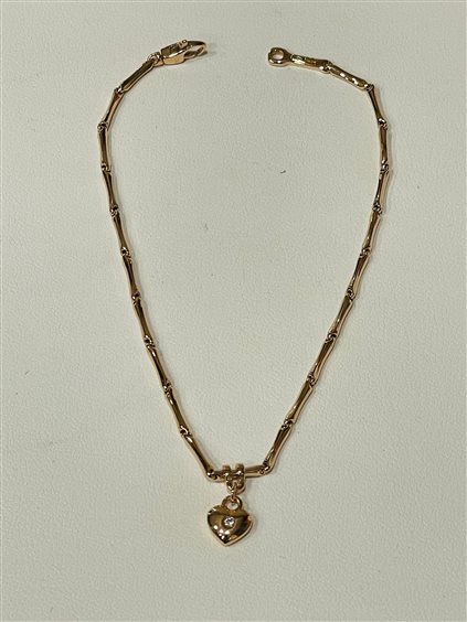 BRACCIALE CHIMENTO IN ORO ROSA KT 18 MAGLIA BAMBOO CON PENDENTE CUORE IN BRILLANTE KT 0.01, MISURA BRACCIALE 18 CM.