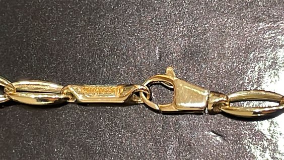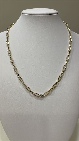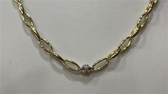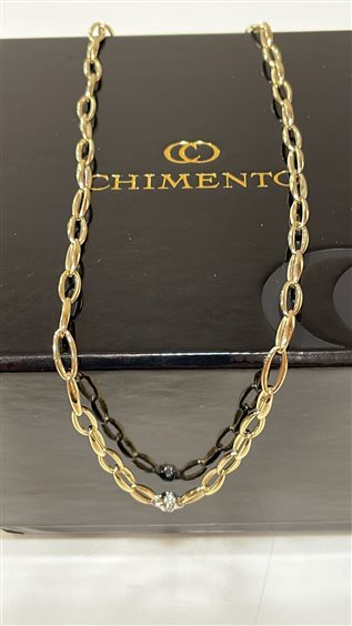 COLLANA CHIMENTO DONNA IN ORO GIALLO KT 18 MAGLIA OVOIDALE CON CENTRALE IN BRILLANTI KT 0.07. MISURA COLLANA 45 CM.