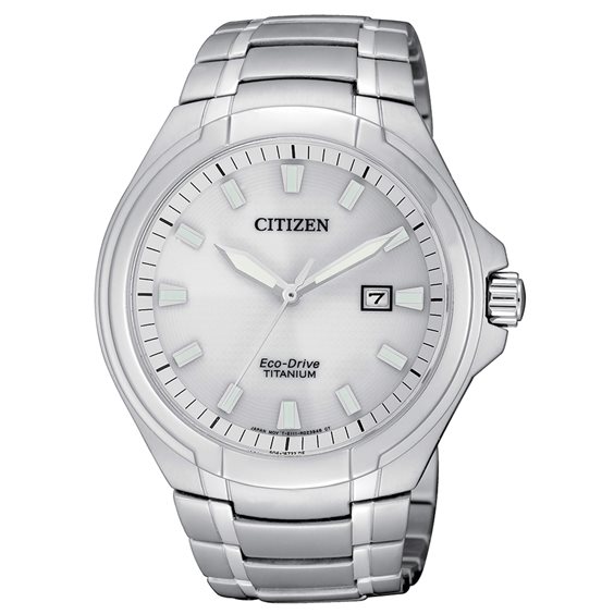 Orologio uomo solo tempo. Cassa e bracciale in Super Titanio PTIC (con finitura in platino) corona e lunetta lucide.Ø 42,5 mm. spessore mm. 10. Fondello serrato a vite. . Movimento Eco-Drive (a carica luce infinita), riserva di carica di 8 mesi. Mai piu' cambio pila.Vetro zaffiro. Quadrante bianco - index e lancette luminor.Bracciale regolabile in Super Titanio opaco e lucido con chiusura deployante a due pulsanti . Impermeabile 10 BAR ( 10 ATM ). Peso 100 grammi. Scatola originale. Garanzia 2 anni.