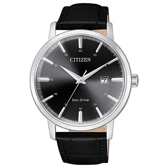 Orologio solo tempo da uomo della collezione Classic, cassa in acciaio del diametro di 40 Mm. Quadrante nero con datario, vetro minerale bombato, cinturino in pelle nero. Movimento Eco-Drive a carica luce con riserva di carica di 180 giorni, resistenza all’acqua 5 atmosfere.