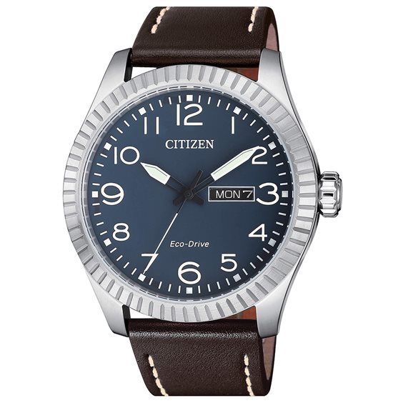 Orologio solo tempo da uomo della collezione Urban con cassa in acciaio del diametro di 42 Mm. Quadrante blu con numeri arabi e datario, cinturino in pelle marrone. Movimento Eco-Drive a carica luce con riserva di carica di 180 giorni. Resistente all'acqua 10 atmosfere.