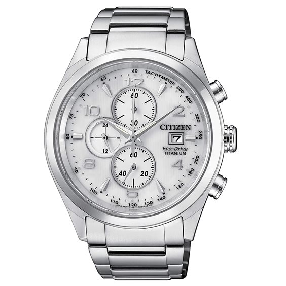 Orologio Cronografo Di Citizen Da Uomo Della Collezione Super Titanio. Modello Con Cassa E Bracciale In Supertitanio Ptic Con Finitura In Platino. Modello Con Cassa Del Diametro Di 42Mm Con Fondo A Vite Questo Orologio Ha Quadrante Bianco Con Numeri Arabi, E Bracciale In Supertitanio Con Chiusura A Pulsante. Modello Con Resistenza All'Acqua Di 10 Atm, Movimento Eco -Drive Con Riserva Di Carica Di 8 Mesi, Datario E Vetro Zaffiro.