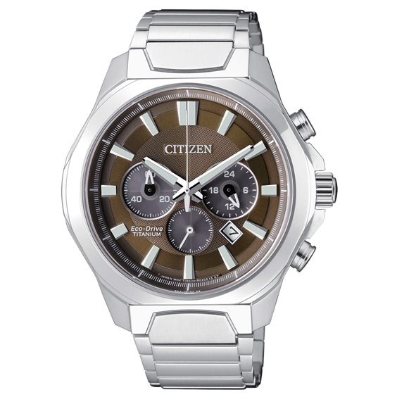 La durezza del vetro zaffiro, la lucentezza del super titanio con trattamento STC, la linea moderna e sportiva e la tecnologia più avanzata: in due parola l’essenza del nuovo orologio della serie Crono SuperTitanio 4320 di Citizen. Pensate ad un orologio leggerissimo ma dalla durezza e compattezza elevata, completamente in Super titanio con trattamento al platino (STC) che rende la superficie particolarmente lucente, pensate poi ad un vetro di zaffiro dalla lucidissima superficie e dalla cristallina trasparenza, praticamente inalterabile nel tempo, pensate infine ad un movimento cronografico con ciclo delle 24 ore e datario, che si carica attraverso l’energia pulita della luce (sistema eco drive). Se state pensando a questo state pensando a Citizen Crono collezione 4320. Dimensione cassa 43,5 mm. Impermeabile 100 metri. Orologio nuovo non solo nella finitura dei materiali ma anche nella forma della cassa che si presenta con un particolare design geometrico e moderno. CARATTERISTICHE Movimento : Eco drive (a carica luce infinita) con riserva di carica di 9 mesi. Cassa in Super Titanium da 43,5mm, con fondello serrato a vite, finitura super titanium Bracciale in Supertitanium Quadrante marrone/bronzo Funzione Chrono a 1/5 di secondo Vetro zaffiro Impermeabilità WR 10 Bar Peso 110gr