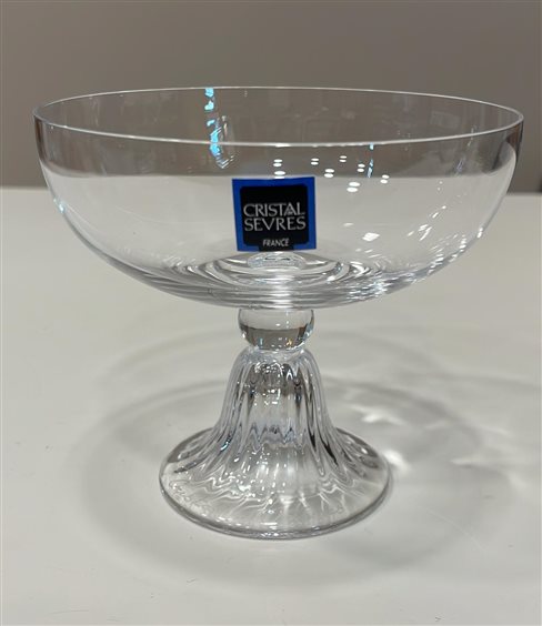 ALZATA CRISTAL SEVRES IN CRISTALLO TRASPARENTE CON PIEDE LAVORATO CON LINEE SIMMETRICHE. GIÀ NEL 1762 LA VETRERIA DI SEVRES FU CONSIDERATA UNA DELLE TRE MIGLIORI FORNACI DI FRANCIA. E’ IL MARCHESE DI MARIGNY CHE INTRODUCE IL CRISTALLO NELLA PRODUZIONE DI SEVRES E CONVERTE L’ EUROPA ALLA TRASPARENZA INEGUAGLIABILE DI UN MATERIALE CHE DIVENTA ORMAI NECESSARIO A TUTTE LE GRANDI TAVOLE. IN UN SECOLO E MEZZO CRISTAL DE SEVRES CONQUISTA GLI APPASSIONATI DELL’ ARTE E DELLA TAVOLA PARTICOLARMENTE INTRANSIGENTI SULLA QUALITÀ E NELL’ ESTETICA. OGGI CRISTAL SEVRES CONIUGA LA PERFEZIONE ARTIGIANALE DEL ‘FATTO A MANO E LA SENSIBILITÀ CREATIVA AL PUNTO CHE MOLTI DEI MAESTRI VETRAI CHE LAVORANO IN SEVRES HANNO RICEVUTO IL PRESTIGIOSO TITOLO DI ‘MEILLEUR OUVRIER DE FRANCE’.