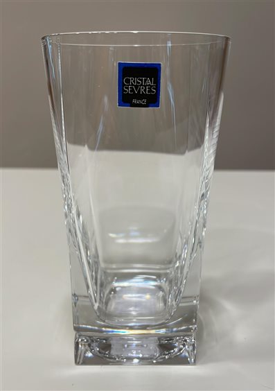 BICCHERE BIBITA FIRMATA CRISTAL SEVRES DELLA COLLEZIONE DANIEL IN CRISTALLO TRASPARENTE. BICCHIERE DALLA FORMA QUADRANGOLARE, LINEA MODERNA. GIÀ NEL 1762 LA VETRERIA DI SEVRES FU CONSIDERATA UNA DELLE TRE MIGLIORI FORNACI DI FRANCIA. E’ IL MARCHESE DI MARIGNY CHE INTRODUCE IL CRISTALLO NELLA PRODUZIONE DI SEVRES E CONVERTE L’ EUROPA ALLA TRASPARENZA INEGUAGLIABILE DI UN MATERIALE CHE DIVENTA ORMAI NECESSARIO A TUTTE LE GRANDI TAVOLE. IN UN SECOLO E MEZZO CRISTAL DE SEVRES CONQUISTA GLI APPASSIONATI DELL’ ARTE E DELLA TAVOLA PARTICOLARMENTE INTRANSIGENTI SULLA QUALITÀ E NELL’ ESTETICA. OGGI CRISTAL SEVRES CONIUGA LA PERFEZIONE ARTIGIANALE DEL ‘FATTO A MANO E LA SENSIBILITÀ CREATIVA AL PUNTO CHE MOLTI DEI MAESTRI VETRAI CHE LAVORANO IN SEVRES HANNO RICEVUTO IL PRESTIGIOSO TITOLO DI ‘MEILLEUR OUVRIER DE FRANCE’.