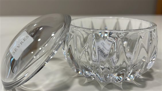 SCATOLA CRISTAL SEVRES IN CRISTALLO TRASPARENTE GIÀ NEL 1762 LA VETRERIA DI SEVRES FU CONSIDERATA UNA DELLE TRE MIGLIORI FORNACI DI FRANCIA. E’ IL MARCHESE DI MARIGNY CHE INTRODUCE IL CRISTALLO NELLA PRODUZIONE DI SEVRES E CONVERTE L’ EUROPA ALLA TRASPARENZA INEGUAGLIABILE DI UN MATERIALE CHE DIVENTA ORMAI NECESSARIO A TUTTE LE GRANDI TAVOLE. IN UN SECOLO E MEZZO CRISTAL DE SEVRES CONQUISTA GLI APPASSIONATI DELL’ ARTE E DELLA TAVOLA PARTICOLARMENTE INTRANSIGENTI SULLA QUALITÀ E NELL’ ESTETICA. OGGI CRISTAL SEVRES CONIUGA LA PERFEZIONE ARTIGIANALE DEL ‘FATTO A MANO E LA SENSIBILITÀ CREATIVA AL PUNTO CHE MOLTI DEI MAESTRI VETRAI CHE LAVORANO IN SEVRES HANNO RICEVUTO IL PRESTIGIOSO TITOLO DI ‘MEILLEUR OUVRIER DE FRANCE’.