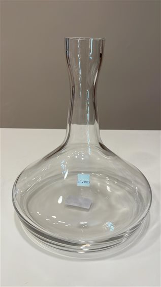 DECANTER CRISTAL SEVRES IN CRISTALLO TRASPARENTE DELLA COLLEZIONE ARPEGES. GIÀ NEL 1762 LA VETRERIA DI SEVRES FU CONSIDERATA UNA DELLE TRE MIGLIORI FORNACI DI FRANCIA. E’ IL MARCHESE DI MARIGNY CHE INTRODUCE IL CRISTALLO NELLA PRODUZIONE DI SEVRES E CONVERTE L’ EUROPA ALLA TRASPARENZA INEGUAGLIABILE DI UN MATERIALE CHE DIVENTA ORMAI NECESSARIO A TUTTE LE GRANDI TAVOLE. IN UN SECOLO E MEZZO CRISTAL DE SEVRES CONQUISTA GLI APPASSIONATI DELL’ ARTE E DELLA TAVOLA PARTICOLARMENTE INTRANSIGENTI SULLA QUALITÀ E NELL’ ESTETICA. OGGI CRISTAL SEVRES CONIUGA LA PERFEZIONE ARTIGIANALE DEL ‘FATTO A MANO E LA SENSIBILITÀ CREATIVA AL PUNTO CHE MOLTI DEI MAESTRI VETRAI CHE LAVORANO IN SEVRES HANNO RICEVUTO IL PRESTIGIOSO TITOLO DI ‘MEILLEUR OUVRIER DE FRANCE’.