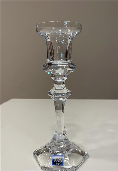 PORTACANDELE A 1 FIAMMA DI CRISTAL SEVRES IN CRISTALLO TRASPARENTE CON SIMMETRIA AL PIEDE. GIÀ NEL 1762 LA VETRERIA DI SEVRES FU CONSIDERATA UNA DELLE TRE MIGLIORI FORNACI DI FRANCIA. E’ IL MARCHESE DI MARIGNY CHE INTRODUCE IL CRISTALLO NELLA PRODUZIONE DI SEVRES E CONVERTE L’ EUROPA ALLA TRASPARENZA INEGUAGLIABILE DI UN MATERIALE CHE DIVENTA ORMAI NECESSARIO A TUTTE LE GRANDI TAVOLE. IN UN SECOLO E MEZZO CRISTAL DE SEVRES CONQUISTA GLI APPASSIONATI DELL’ ARTE E DELLA TAVOLA PARTICOLARMENTE INTRANSIGENTI SULLA QUALITÀ E NELL’ ESTETICA. OGGI CRISTAL SEVRES CONIUGA LA PERFEZIONE ARTIGIANALE DEL ‘FATTO A MANO E LA SENSIBILITÀ CREATIVA AL PUNTO CHE MOLTI DEI MAESTRI VETRAI CHE LAVORANO IN SEVRES HANNO RICEVUTO IL PRESTIGIOSO TITOLO DI ‘MEILLEUR OUVRIER DE FRANCE’.