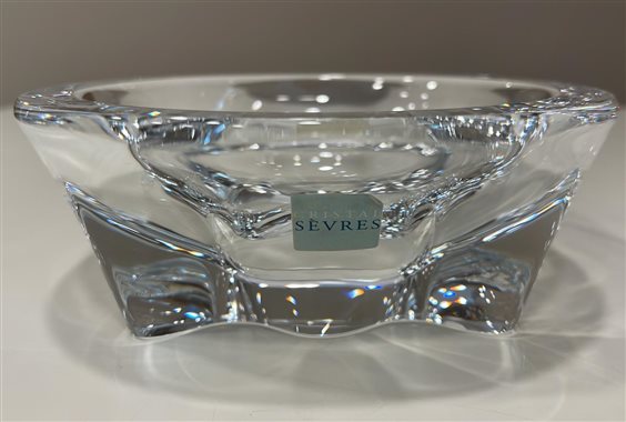 POSACENERE CRISTAL SEVRES IN CRISTALLO TRASPARENTE DALLA BASE QUADRANGOLARE E DAI BORDI ROTONDI. GIÀ NEL 1762 LA VETRERIA DI SEVRES FU CONSIDERATA UNA DELLE TRE MIGLIORI FORNACI DI FRANCIA. E’ IL MARCHESE DI MARIGNY CHE INTRODUCE IL CRISTALLO NELLA PRODUZIONE DI SEVRES E CONVERTE L’ EUROPA ALLA TRASPARENZA INEGUAGLIABILE DI UN MATERIALE CHE DIVENTA ORMAI NECESSARIO A TUTTE LE GRANDI TAVOLE. IN UN SECOLO E MEZZO CRISTAL DE SEVRES CONQUISTA GLI APPASSIONATI DELL’ ARTE E DELLA TAVOLA PARTICOLARMENTE INTRANSIGENTI SULLA QUALITÀ E NELL’ ESTETICA. OGGI CRISTAL SEVRES CONIUGA LA PERFEZIONE ARTIGIANALE DEL ‘FATTO A MANO E LA SENSIBILITÀ CREATIVA AL PUNTO CHE MOLTI DEI MAESTRI VETRAI CHE LAVORANO IN SEVRES HANNO RICEVUTO IL PRESTIGIOSO TITOLO DI ‘MEILLEUR OUVRIER DE FRANCE’.