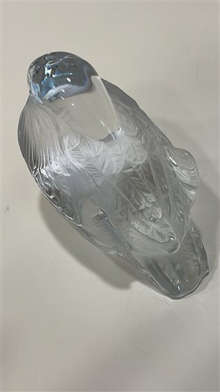 Scultura Daum Uccello in cristallo trasparente e piume in cristallo opaco. Daum è stata una cristalleria di Nancy in Francia, fondata nel 1878 da Jean Daum. Attualmente questo marchio indica oggetti artistici in cristallo, prodotti con l'impiego di pasta di vetro (patè de verre), una tecnica di fusione in uno stampo refrattario con successiva cottura in forno. Ogni pezzo Daum è unico e rappresenta un'opera d'arte tra le sculture contemporanee.