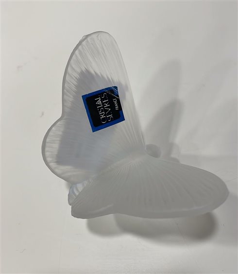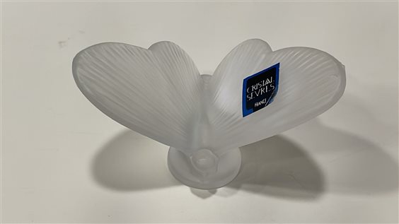 SCULTURA CRISTAL DE SEVRES FARFALLA IN CRISTALLO OPACO BIANCO. GIÀ NEL 1762 LA VETRERIA DI SEVRES FU CONSIDERATA UNA DELLE TRE MIGLIORI FORNACI DI FRANCIA. E’ IL MARCHESE DI MARIGNY CHE INTRODUCE IL CRISTALLO NELLA PRODUZIONE DI SEVRES E CONVERTE L’ EUROPA ALLA TRASPARENZA INEGUAGLIABILE DI UN MATERIALE CHE DIVENTA ORMAI NECESSARIO A TUTTE LE GRANDI TAVOLE. IN UN SECOLO E MEZZO CRISTAL DE SEVRES CONQUISTA GLI APPASSIONATI DELL’ ARTE E DELLA TAVOLA PARTICOLARMENTE INTRANSIGENTI SULLA QUALITÀ E NELL’ ESTETICA. OGGI CRISTAL SEVRES CONIUGA LA PERFEZIONE ARTIGIANALE DEL ‘FATTO A MANO E LA SENSIBILITÀ CREATIVA AL PUNTO CHE MOLTI DEI MAESTRI VETRAI CHE LAVORANO IN SEVRES HANNO RICEVUTO IL PRESTIGIOSO TITOLO DI ‘MEILLEUR OUVRIER DE FRANCE’.