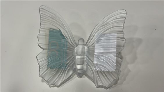 SCULTURA FARFALLA ROYALE DE CHAMPAGNE IN CRISTALLO SATINATO. La "Cristallerie Royale de Champagne-BAYEL" è uno dei più antichi produttori francesi di cristalli soffiati a bocca. Questa fabbrica di cristalli di fama mondiale non ha mai spento i suoi forni dal 17° secolo. La Royale de Champagne di oggi è l'erede di alcuni dei saperi più ricchi e raffinati dove la mano dell'uomo è sovrana. Soffiatura a bocca, taglio a mano, incisione a sabbia, satinatura, doratura, deposizione di platino, smaltatura, sono tutti tributi ai mestieri del fuoco che hanno fatto la reputazione di Bayel e le hanno permesso di ottenere l'etichetta Living Heritage Company.