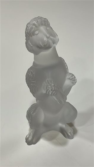 SCULTURA CRISTAL DE SEVRES CANE BARBONCINO IN CRISTALLO SATINATO. GIÀ NEL 1762 LA VETRERIA DI SEVRES FU CONSIDERATA UNA DELLE TRE MIGLIORI FORNACI DI FRANCIA. E’ IL MARCHESE DI MARIGNY CHE INTRODUCE IL CRISTALLO NELLA PRODUZIONE DI SEVRES E CONVERTE L’ EUROPA ALLA TRASPARENZA INEGUAGLIABILE DI UN MATERIALE CHE DIVENTA ORMAI NECESSARIO A TUTTE LE GRANDI TAVOLE. IN UN SECOLO E MEZZO CRISTAL DE SEVRES CONQUISTA GLI APPASSIONATI DELL’ ARTE E DELLA TAVOLA PARTICOLARMENTE INTRANSIGENTI SULLA QUALITÀ E NELL’ ESTETICA. OGGI CRISTAL SEVRES CONIUGA LA PERFEZIONE ARTIGIANALE DEL ‘FATTO A MANO E LA SENSIBILITÀ CREATIVA AL PUNTO CHE MOLTI DEI MAESTRI VETRAI CHE LAVORANO IN SEVRES HANNO RICEVUTO IL PRESTIGIOSO TITOLO DI ‘MEILLEUR OUVRIER DE FRANCE’.