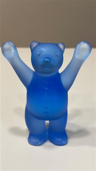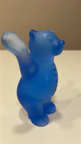 SCULTURA ORSO CRISTAL SEVRES IN CRISTALLO OPACO BLU. ORSO CON ZAMPE ANTERIORI IN ARIA. GIÀ NEL 1762 LA VETRERIA DI SEVRES FU CONSIDERATA UNA DELLE TRE MIGLIORI FORNACI DI FRANCIA. E’ IL MARCHESE DI MARIGNY CHE INTRODUCE IL CRISTALLO NELLA PRODUZIONE DI SEVRES E CONVERTE L’ EUROPA ALLA TRASPARENZA INEGUAGLIABILE DI UN MATERIALE CHE DIVENTA ORMAI NECESSARIO A TUTTE LE GRANDI TAVOLE. IN UN SECOLO E MEZZO CRISTAL DE SEVRES CONQUISTA GLI APPASSIONATI DELL’ ARTE E DELLA TAVOLA PARTICOLARMENTE INTRANSIGENTI SULLA QUALITÀ E NELL’ ESTETICA. OGGI CRISTAL SEVRES CONIUGA LA PERFEZIONE ARTIGIANALE DEL ‘FATTO A MANO E LA SENSIBILITÀ CREATIVA AL PUNTO CHE MOLTI DEI MAESTRI VETRAI CHE LAVORANO IN SEVRES HANNO RICEVUTO IL PRESTIGIOSO TITOLO DI ‘MEILLEUR OUVRIER DE FRANCE’.