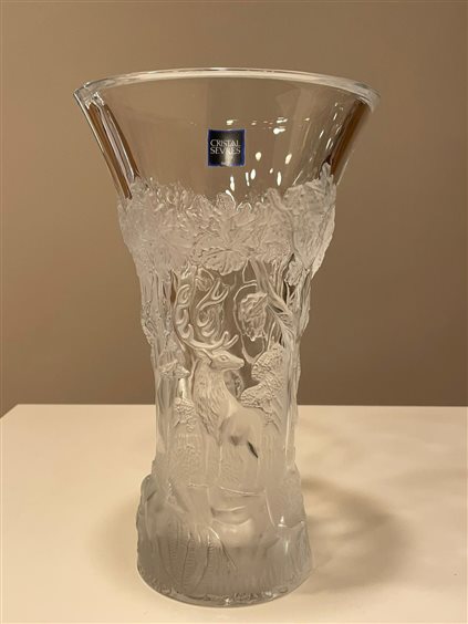 VASO FONTAINBLEAU E' UN PRESTIGIOSO PEZZO DELLA COLLEZIONE CRISTAL DE SEVRES DOVE SONO RAFFIGURATI DEI CERVI IN MEZZO A UNA FORESTA. GIÀ NEL 1762 LA VETRERIA DI SEVRES FU CONSIDERATA UNA DELLE TRE MIGLIORI FORNACI DI FRANCIA. E’ IL MARCHESE DI MARIGNY CHE INTRODUCE IL CRISTALLO NELLA PRODUZIONE DI SEVRES E CONVERTE L’ EUROPA ALLA TRASPARENZA INEGUAGLIABILE DI UN MATERIALE CHE DIVENTA ORMAI NECESSARIO A TUTTE LE GRANDI TAVOLE. IN UN SECOLO E MEZZO CRISTAL DE SEVRES CONQUISTA GLI APPASSIONATI DELL’ ARTE E DELLA TAVOLA PARTICOLARMENTE INTRANSIGENTI SULLA QUALITÀ E NELL’ ESTETICA. OGGI CRISTAL SEVRES CONIUGA LA PERFEZIONE ARTIGIANALE DEL ‘FATTO A MANO E LA SENSIBILITÀ CREATIVA AL PUNTO CHE MOLTI DEI MAESTRI VETRAI CHE LAVORANO IN SEVRES HANNO RICEVUTO IL PRESTIGIOSO TITOLO DI ‘MEILLEUR OUVRIER DE FRANCE’.