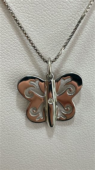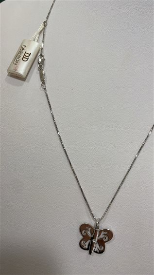 COLLANA DAVITE E DELUCCHI IN ORO BIANCO KT 18 CON PENDENTE FARFALLA IMPREZIOSITO DA DIAMANTE TAGLIO BRILLANTE KT 0.01.