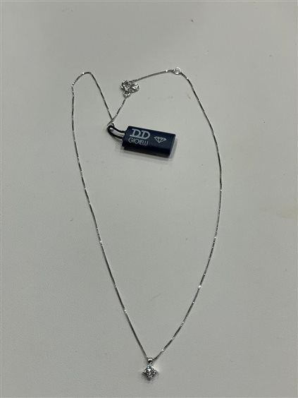 Collana Davite e Delucchi donna in oro bianco kt 18 con punto luce in brillante kt 0.20 G. Misura collana 45 cm.