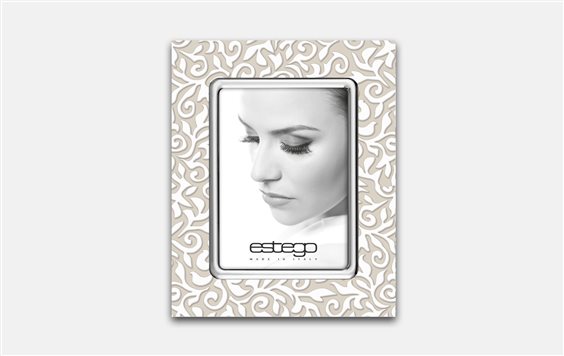 CORNICE ESTEGO IN LEGNO, GRIGIA CON DECORI IN ARGENTO DISEGNI FOGLIACEI ASIMMETRICI. PORTAFOTO 13X18. ESTEGO srl nasce nel 2011 dalla trentennale esperienza di Gilberto Sturba, specialista nel settore della produzione e della commercializzazione di articoli da regalo e di immagini sacre. L’azienda ha l’obiettivo di presentare ad un pubblico sempre più esigente articoli di eccellenza, caratterizzati dal design italiano e realizzati con sapiente manualità artigiana. Le collezioni Estego, prodotte con materiali di alta qualità e accuratamente rifinite, si contraddistinguono per l’eleganza e lo stile inconfondibile dei prodotti “Made in Italy”.