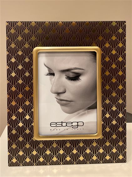 CORNICE ESTEGO IN LEGNO, MARRONE CON DECORI ORO GIALLO DISEGNI GEOMETRICI ASIMMETRICI. PORTAFOTO 13X18. ESTEGO srl nasce nel 2011 dalla trentennale esperienza di Gilberto Sturba, specialista nel settore della produzione e della commercializzazione di articoli da regalo e di immagini sacre. L’azienda ha l’obiettivo di presentare ad un pubblico sempre più esigente articoli di eccellenza, caratterizzati dal design italiano e realizzati con sapiente manualità artigiana. Le collezioni Estego, prodotte con materiali di alta qualità e accuratamente rifinite, si contraddistinguono per l’eleganza e lo stile inconfondibile dei prodotti “Made in Italy”.