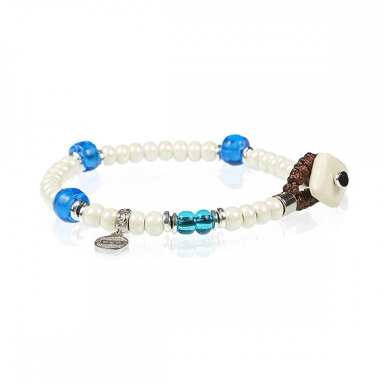 BRACCIALE GERBA UNISEX IN CERAMICA BIANCA CON INSERTI IN ARGENTO 925 E CHIUSURA IN CERAMICA E CORDONCINO MARRONE. MISURA BRACCIALE 21 CM.