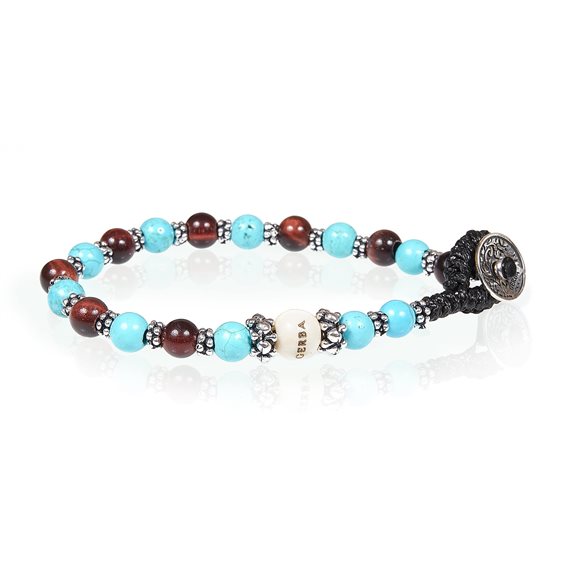 Il bracciale Gerba LAB 071 si distingue per il suo particolare design, realizzato con cordino in filo cerato, perle in pietra 6mm Turchese e Occhio di Tigre, chiusura in Argento e componenti in Metallo anallergico. Realizzato rigorosamente a mano dai nostri artigiani richiede infatti un paziente lavoro (senza l’utilizzo di alcun particolare strumento)