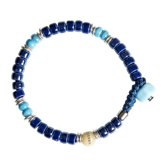 BRACCIALE GERBA UNISEX IN CERAMICA BLU E AZZURRO CON INSERTI IN ARGENTO 925, CHIUSURA CON CORDONCINO BLU E CERAMICA. MISURA BRACCIALE 20.5 CM.