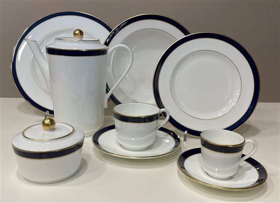 Tradizione ed eccellenza manifatturiera s’intrecciano all’insegna della bellezza senza tempo. La denominazione Ginori 1735 rimanda alle origini settecentesche della società, quando il marchese Carlo Andrea Ginori avvia a Doccia, nella villa della tenuta di famiglia, la futura Manifattura di Doccia. IL SERVIZIO GINORI LAGO BLUE E' COMPOSTO DA 65 PEZZI DI CUI SERVIZIO TAVOLA 41 PEZZI: -12 PIATTI PIANI (26cm) -12 PIATTI FONDI (23cm) -12 PIATTI FRUTTA (20cm) -1 ZUPPIERA -1 RAVIERA -1 INSALATIERA -1 PIATTO TONDO -1 PIATTO OVALE SERVIZIO CAFFE' 15 PEZZI: -1 CAFFETTIERA (h20cm x 20cm) -1 ZUCCHERIERA (h10cm x 10cm) -1 LATTIERA -12 TAZZE CAFFE'(h6cm) CON PIATTINO (12cm) SERVIZIO THE 9 PEZZI: -1 THEIERA -1 ZUCCHERIERA -1 LATTIERA -6 TAZZE THE (h7cm) CON PIATTINO (15cm)
