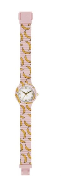 Cassa 32 mm, Movimento 3H Miyota 2035, W.R. 5 atm, sfere ip gold, cinturino in silicone stampato banana
